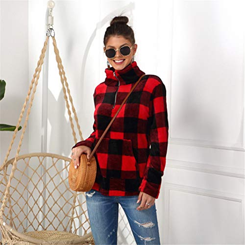 Minetom Felpa con Cappuccio Donna Felpa Spessa Maniche Lunghe A Quadri Felpe con Cappuccio con Zip Autunno Inverno Tasche Pullover A Rosso S