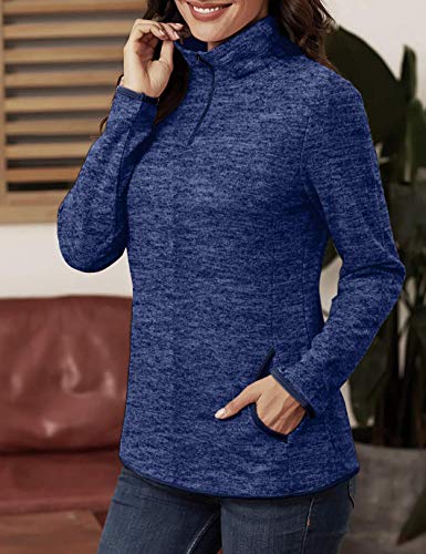 Minetom Felpe Senza Cappuccio Donna Pullover Tops Manica Lunga Maglione con 1/4 Zip Risvolto Caldo Ragazza Invernale Maglion Blu XS