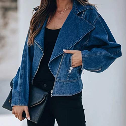 Minetom Giacca in Jeans Donna Giacca Jeans Giubbino Corto Giubbotto Denim Donna Tasche Abbottonato Denim Giacca Denim Cappotto B Blu XS