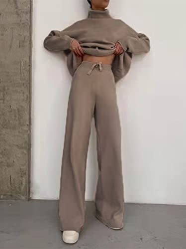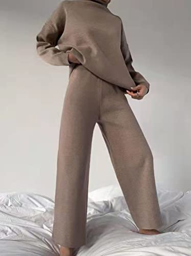 Minetom Tuta da Ginnastica Donna Tute Pullover a Collo Alto Maglione + Pantaloni Set Training Sportivo a Maglia Completo Sportswear 2 Pezzi A Caffè M
