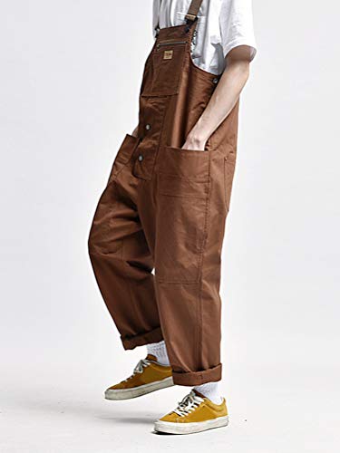 Minetom Jeans Salopette Uomo Sciolto Salopette Pantaloni Tuta in Denim Salopette Casual Lavoro Overall retrò Salopette F Marrone S