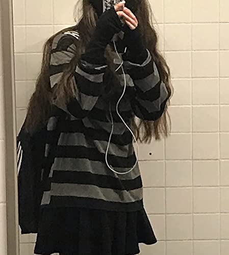 Minetom Maglie Donna Inverno Righe Maniche Lunghe Girocollo T-Shirt Bluse Oversize Tunica Pullover Autunno Harajuku Coppia Top A Grigio XS