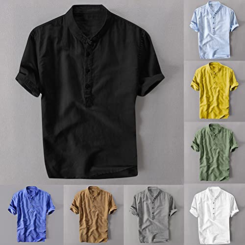 Minetom Maglietta da Uomo Estivo Top Camicia in Cotone Lino a Maniche Corte con Bottoni Casual Tinta Unita Camicie Shirts da Spiaggia Interni Lavoro e Viaggi A Verde 3XL