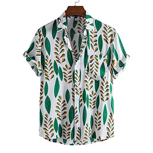 Minetom Maglietta da Uomo Estivo Top Funky Camicia in Cotone Lino a Maniche Corte con Bottoni Casual Vintage Stampato Hawaiana Camicie Shirts da Spiaggia D Verde XXL