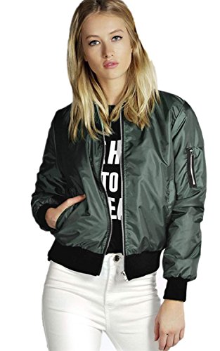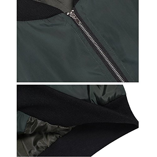 Minetom Maniche Lunghe Giacca Cappotto Trapuntato Motociclista Giacche Magliette Casual-Donna Verde 44