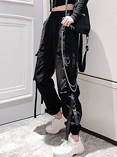 Minetom Pantaloni Cargo da Donna Pantaloni Sportivi Vita Alta Multi Tasche Jogging Fitness Yoga Pants con Catena A Nero XS