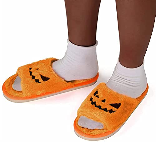 Minetom Pantofole Peluche Donna Ciabatte Da Casa Halloween Zucca Invernali Punta Aperta Slippers Da Interno Pantofole A Arancione 35 EU
