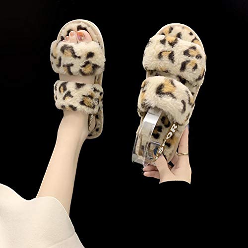 Minetom Pantofole con Synthetic Pelliccia Donna Morbido Comode Pantofole da Casa Caldo Peluche Inverno Ciabatte con Punta Aperta Banda Elastica Pantofole B Beige Leopardo 40/41 EU