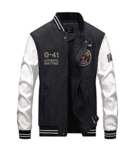 Minetom Uomo/Signori/Ragazzi PU Pelle College Baseball Jacket Felpa Motociclista Giacca Giubbotto B Bianco XS