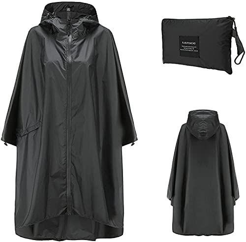 Minetom Poncho Pioggia Impermeabile per Donna Uomo Unisex Leggero Multiuso Mantella Antipioggia Giacca con Cappuccio C Nero XL