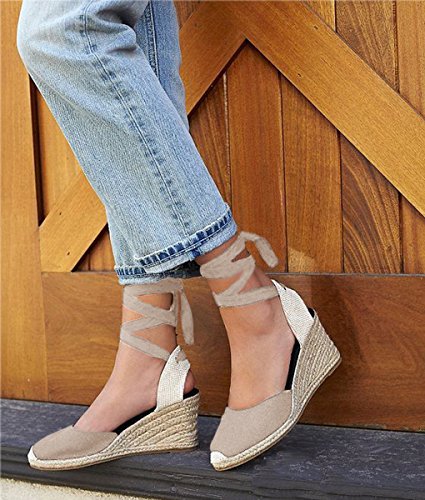 Minetom Sandali Donna Moda Espadrillas con Cinturino Casual Zeppa Piattaforma Eleganti Estivi Sandals Romani Testa Tonda Dolce Beige EU 43