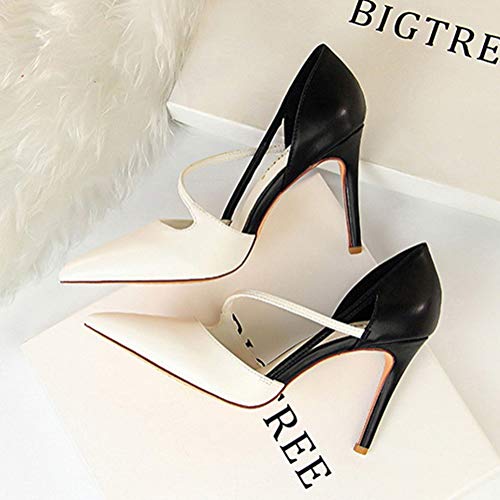 Minetom Sandali Donna Estate Party Pelle Moda Cava Dolce Elegante Colore Misto Sandals Bocca Superficiale Sottile Tacco Alto Bride Di Festa