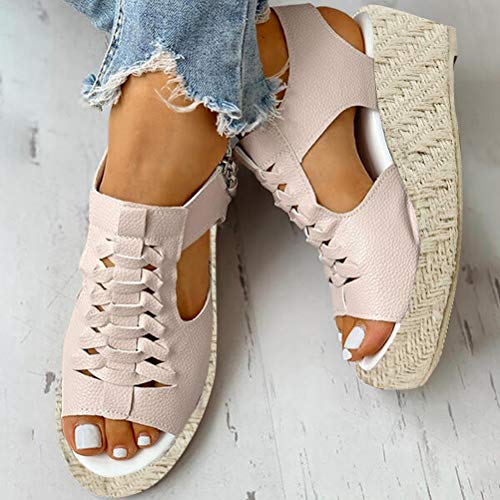 Minetom Sandali Donna Romani Estivi Sandals Peep Toe Tacco A Blocco Scarpe Punta Aperta Cerniera Laterale Spiaggia Sandali B Albicocca 42 EU