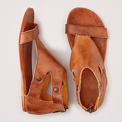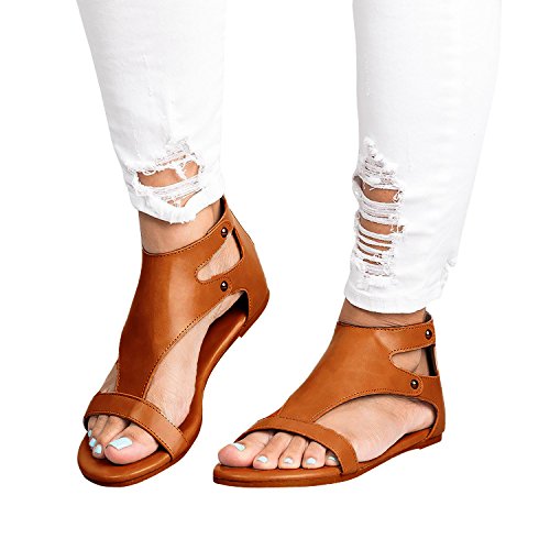 Minetom Sandali Donna Shoes Eleganti Estivi Tacco Basso Peep Toe Scarpe Spiaggia Casuale Retrò Romani Sandals Marrone EU 39