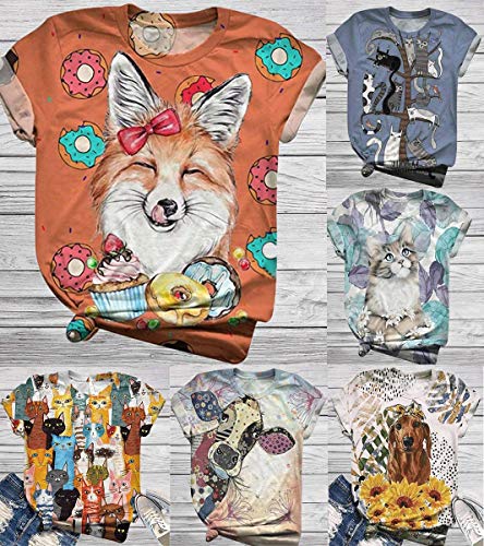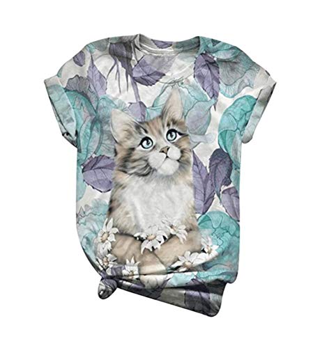 Minetom T-Shirt Donna Casual Estiva Girocollo Camicetta Blusa Manica Corta Camicia Tops Animale Stampato Tee Maglietta B Gatto S