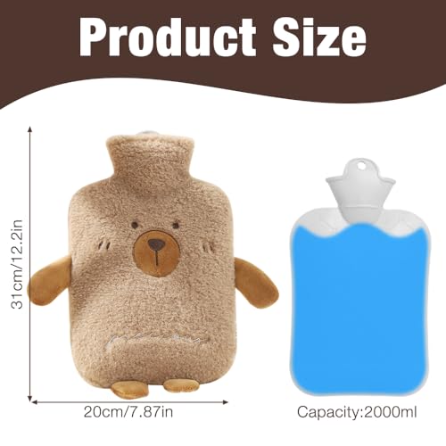 Mineup Borsa Dell'acqua Calda Peluche con Coperchio, 2L Bottiglie dell'acqua Calda per Bambini, Soffice Bottiglia dell'acqua Calda, Adatto per Regali di Natale e Inverno per Bambini Fidanzate(Orso)