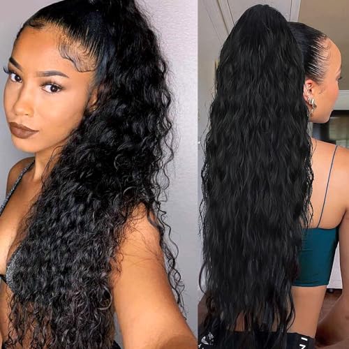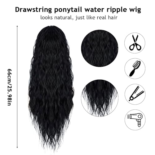 Mineup Extension Coda di Cavallo 66 cm Estensione dei Capelli a Coda di Cavallo Ondulata Lunga,Riccio Sintetico Ponytail Extension Naturale Dell'onda di Mais Resistente al Calore Parrucchino Coda