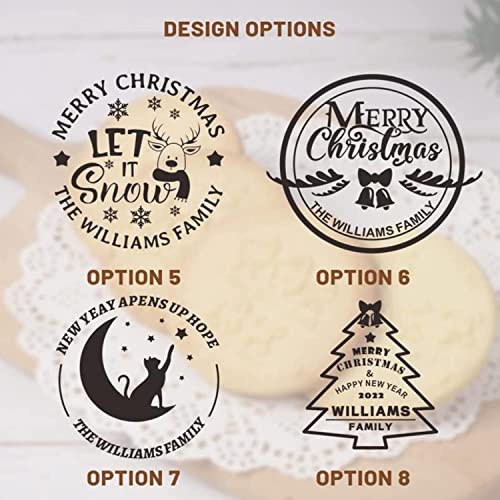 Mingchu Personalized Merry Christmas Cookie Stamp with Your Family Name 3D Raised Design for Baking Cookie Stamps, 8pcs Biscuit Press Stamp Molds for Fondant, Frosting, Decorative Cakes/Sugar Paste