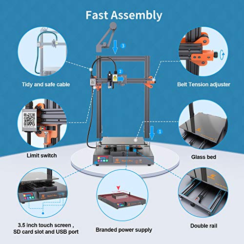 【Pre-assemblaggio e regolazione facile】 Semplificato il rapido processo di installazione in 3 fasi, non è necessario girare la base per stringere le viti. Upgrade Belt Tensioner, La cinghia dell'asse X e la cinghia dell'asse Y possono essere regolate in qualsiasi momento ruotando la vite manualmente, in modo da ottenere un effetto di stampa di alta precisione.