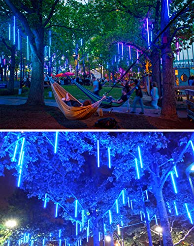Minger 30 CM 8 tubi Bercy Doccia Pioggia Luci 144LEDs Stringa Esterna Impermeabile per Natale Matrimonio Partito Albero Decorativo, Decorazione di Alberi Lungo le Strade (Blu)