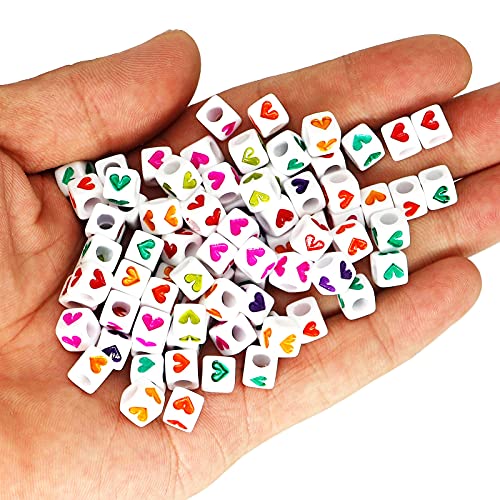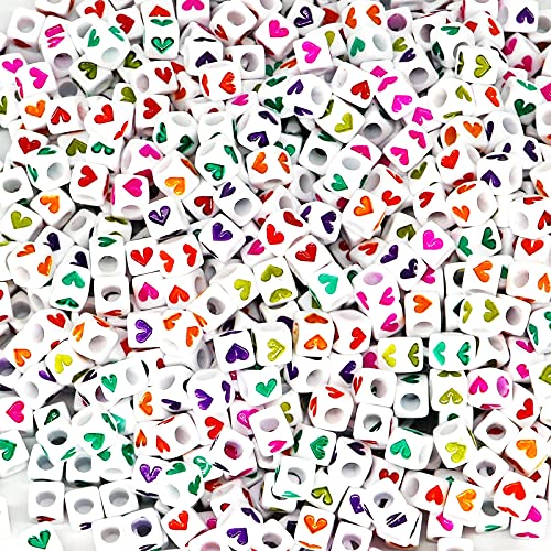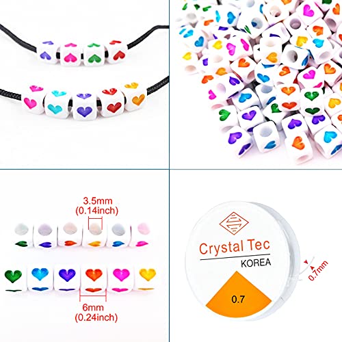 MINGHOO 800pz 6mm Variopinto Cubiche Perline, Perline Forma Cuore, Perline per Braccialetti, Perline Acriliche per collane, bracciali, portachiavi, gioielli per bambini, Con 10m Corda Cristallo
