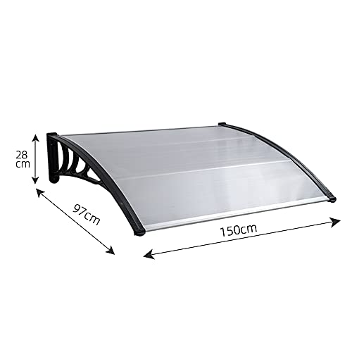 Mingone Cappottina per Porta D'ingresso Tettoia per Porta Parapioggia Pensilina Trasparente ad Arco per Scrivania in Plastica da 5 mm (150x100cm, Nero-Trasparente)