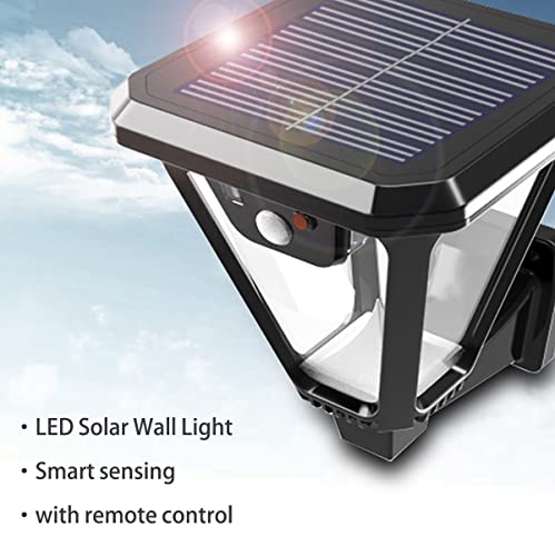 MINGRT Luce Solare LED Esterno Con Sensore Di Movimento, Nero Applique Da Parete Esterno Solare Con Telecomando Impermeabile Lampada Da Parete Esterno Con Sensore Luce Illuminazione Esterno Moderno