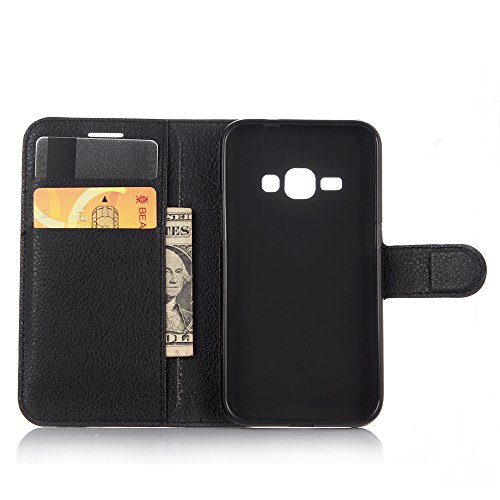 MINGYOUNG Custodia per Samsung J2 2016 / J2 PRO Pelle Portafoglio Libro Wallet Case Magnetica Supporto di Stand Cover per Samsung J2 2016 / J2 PRO (Nero)