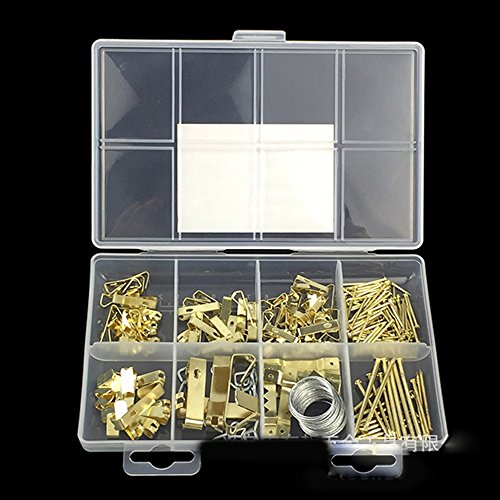 MINGZE Appendini per quadri, 200 pezzi gancio per foto, gancio per foto resistente con chiodi per montaggio a parete, regge 10-100 libbre, dorato