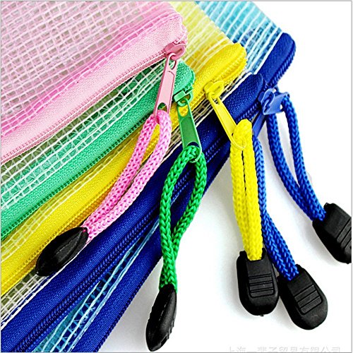 MINGZE 10 pezzi A4 Busta Plastica Maglia Cerniera lampo Documento Cartella sacchetti, Cartelle di file, Forniture per uffici di archiviazione di sacchetti di archiviazione in PVC (rosso, blu, giallo