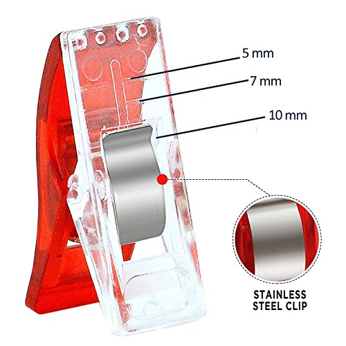 Plastica + metallo, alta qualità. Questa base per clip è facilmente in grado di trattenere gli strati e rendere i panni piani e piatti. Queste clip da cucire sono perfette per tutti i tipi di arte di stoffa per cucire. I colori assortiti aiutano a segnare il tessuto e il punto di chiusura