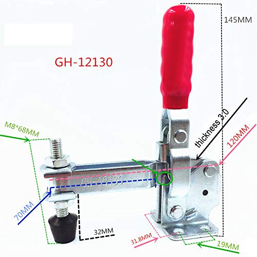 MINGZE 2 pezzi Toggle Clamp GH-12130, a sgancio rapido verticale toggle morsetto 227 kg / 500Lbs di capacità Tenere Strumento capacità antiscivolo rosso strumento mano