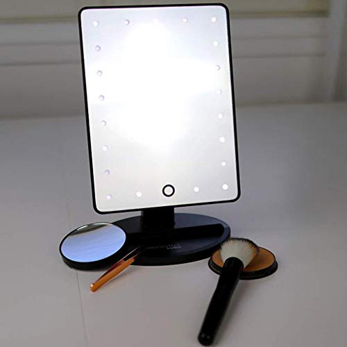 MINGZE Specchio per Trucco Illuminato a LED, Interruttore Touch Screen, Rotazione a 180 Gradi, Specchio Portatile e Specchio cosmetico ad Alta Definizione (Bianca)