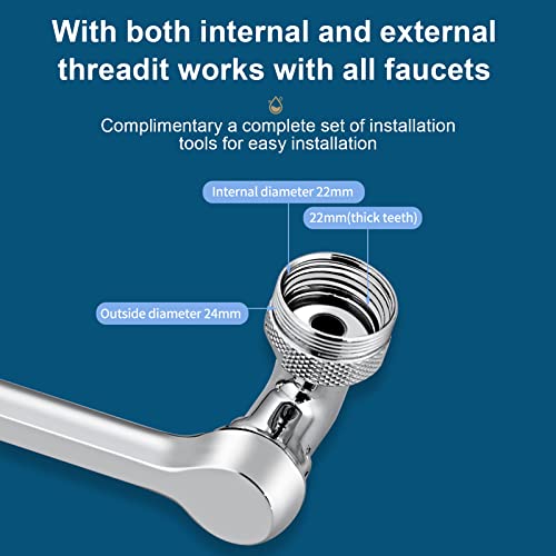 Aeratore per rubinetto con filtro rotante 1080: questo attacco per spruzzatore per lavello da cucina/bagno ha 3 parti rotanti, che possono essere regolate a 360 gradi in tutte le direzioni e può essere piegato o piegato a piacimento, consentendo all'acqua di raggiungere ogni angolo del lavandino, ottenere la funzione di pulire lo sporco nel lavandino.