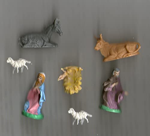 MINIATURA PRESEPE NATIVITA' 3 CM 7 ELEMENTI PER PASTORI, MARIA GESU GIUSEPPE ASINO BUE E 2 PECORE S. GREGORIO ARMENO RICEVI SANTINO NATIVITA'