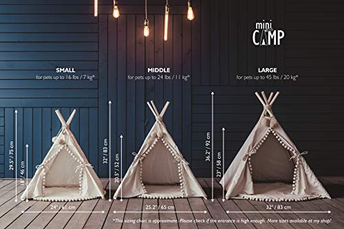 IL NOSTRO TEEPEE ORIGINALE per animali domestici è adornato con bellissimi pali di legno naturale e bordo di pompon che gli conferiscono un'atmosfera giocosa e rilassante. Gli animali domestici adorano avere il loro spazio privato per dormire, nascondersi e giocare. I teepee per animali domestici MINICAMP sono perfetti per questo scopo!