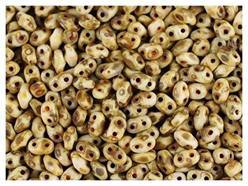 MiniDuo Beads 10gr 2x4mm Ceco Pressato Perle di Vetro con Due Fori, Chalk Travertine Dark Matte