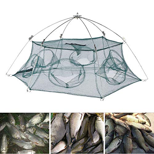 Minifinker Rete da Pesca con Trappola per Esche con Design Speciale con Cerniera Grande, Leggera con Borsa, Adatta per catturare granchi(6 Angoli Chiusi 80cm)