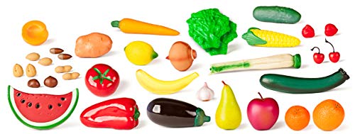 Miniland Educational 154166 - Contenitore con pezzi varie di cibo di giocattolo, 36 pezzi