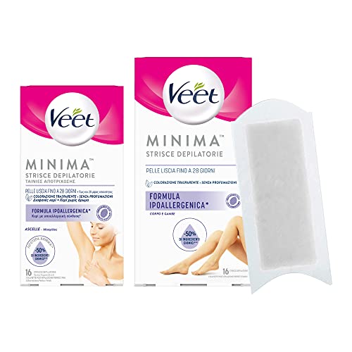 Veet Minima Strisce Depilatorie Anallergiche, Strisce per Ascelle e Strisce per Corpo e Gambe, 2 confezioni da 16 Strisce Ciascuna
