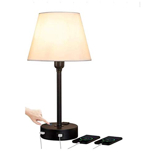 AILI Minimalista Comodino Lampada da Tavolo con Dual USB di Ricarica Rapida Porta Lino Paralume Lampada da Tavolo Camera Comodino Touch Control Table Lamp
