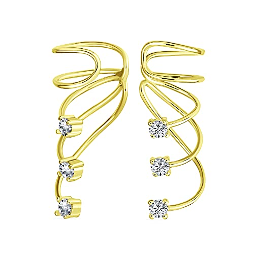 Minimalista Triple Spiral CZ Wire Cartilage Ear Cuff Wrap Cubic Zirconia Helix Earring 14K Gold Plated Sterling Silver