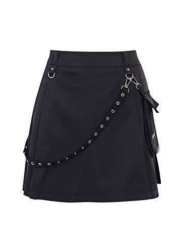 Minironna da donna in stile gotico, a vita alta, linea A, con tasche, per ragazze punk gotiche, Nero, S