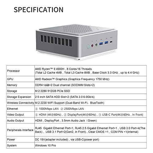 MINIS FORUM HM90 Mini PC, processore AMD Ryzen 9 4900H 8 core CPU 32 GB DDR4 / 512 GB SSD Mini computer desktop con Windows 11 Pro, connessione HDMI/DP/USB-C, WiFi 6, BT 5.1, USB 3.0×4