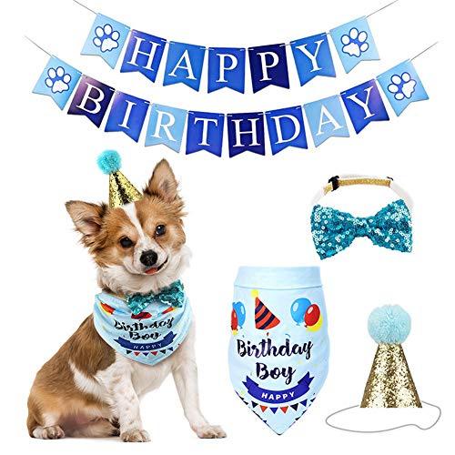 Regalo di compleanno per cani: questo set di accessori per festa di compleanno renderà il vostro cucciolo più affascinante e carino. La confezione include simpatica bandana di compleanno per cani, cappello, papillon e festone di compleanno.