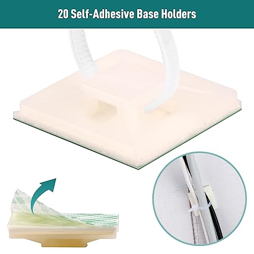 MINISOISO 1000 Fascette Plastica per Cablaggio, 100/150/200/250/300 mm Fascette Elettricista, Nylon Cavi Stringicavo con 20 basi adesive, per Gestione dei Cavi Elettrici, Fili, Giardinaggio, bianco