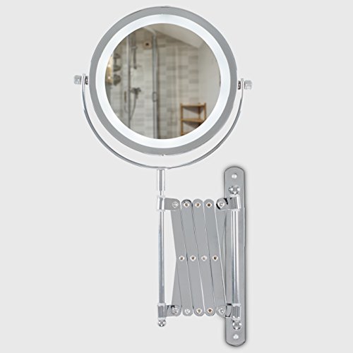 Dotato di braccio estensibile e completamente regolabile testa dello specchio inclinabile. Caratteristiche: 12 luci LED a risparmio energetico