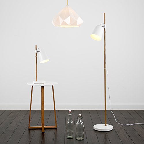 MiniSun - Lampada da tavolo moderna ed orientabile nello stile scandinavo e designer con una finitura di colore crema ed un centro di legno - Lampada da tavolo