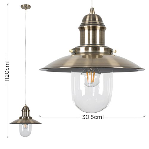 MiniSun - Lampadario a sospensione da soffitto, design moderno, a forma di lanterna da pescatore, struttura in metallo e vetro, Antique Brass 60 wattsW 230 voltsV