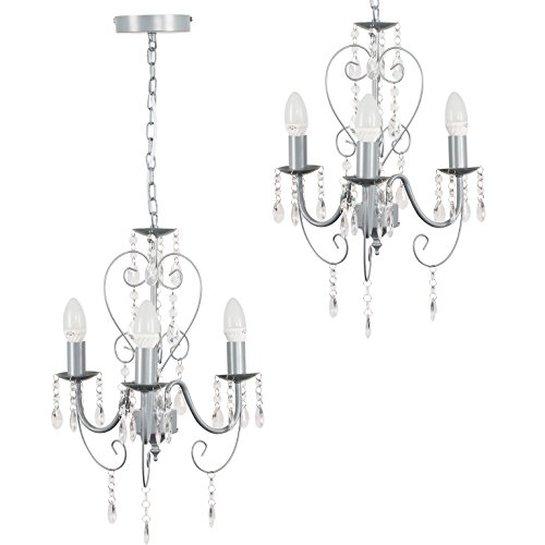 MiniSun - Lampadario vintage nello stile francese shabby chic con 3 bracci e finitura grigia e ornata